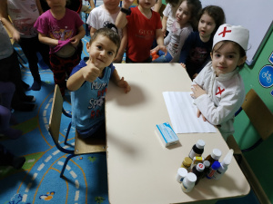 Учить выполнять различные роли в соответствии с сюжетом игры, используя атрибуты, побуждать детей самостоятельно создавать недостающие для игры предметы, детали (инструменты, оборудование).Пробуждать детей более широко и творчески использовать в играх знания о больнице, о работе врачей, об аптеке. Развивать творческое воображение, способность совместно развертывать игру, продолжать формировать умение договариваться.3Воспитывать доброжелательность, готовность выручить товарища
