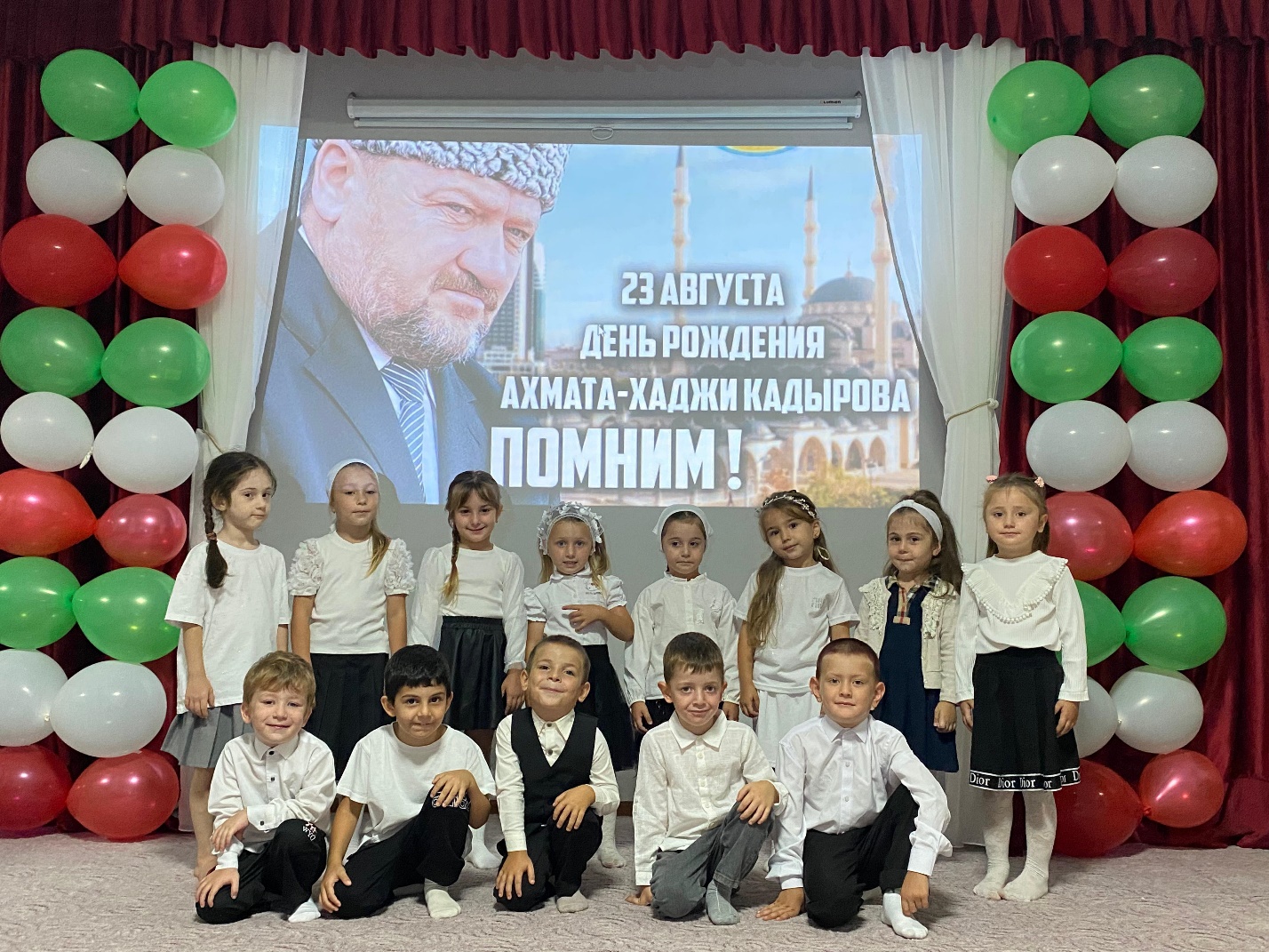 В нашем детском саду № 2 «Малыш» прошли мероприятия ко дню «Рождения Ахмат-Хаджи Кадырова». Дети рассказывали стихи пели песни.